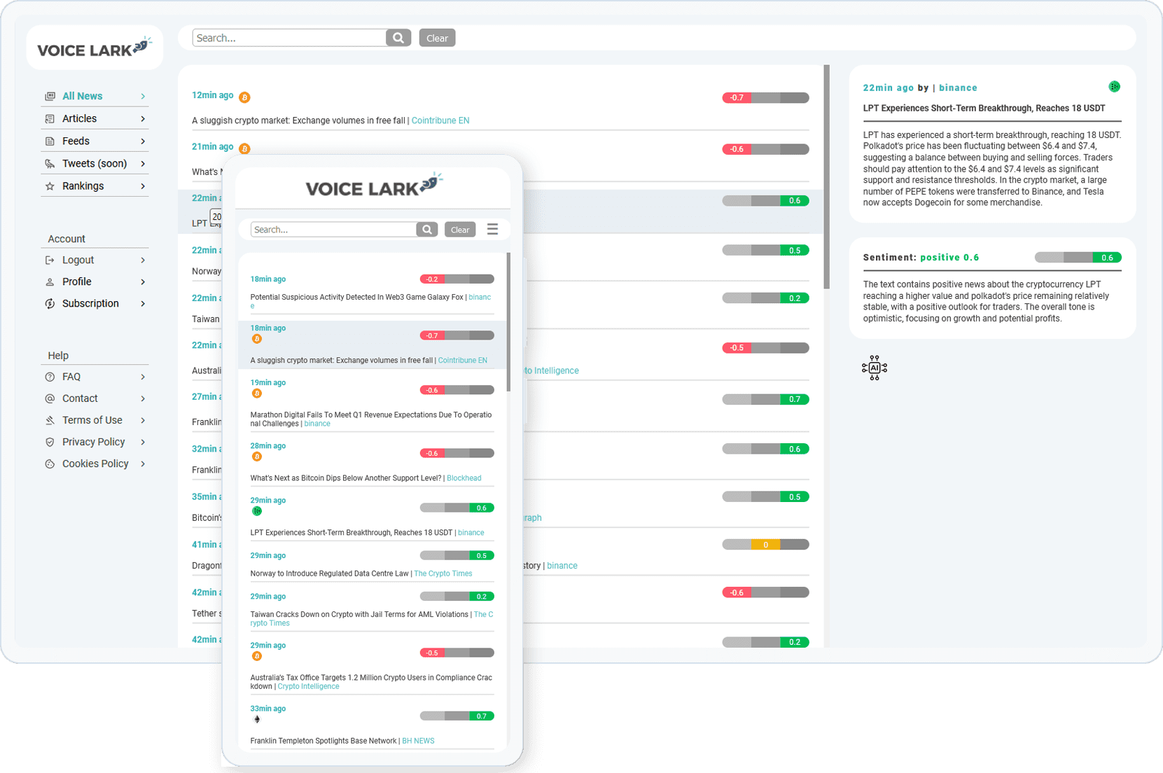 VoiceLark is a tool that allows investors and traders to assess the overall mood and emotions of market participants that may affect price movements.